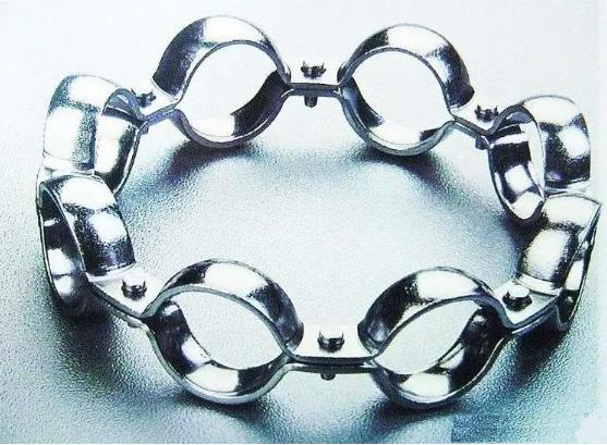 四、松扣。帶狀保持架通常會(huì)帶有松扣,以便滾珠能夠準(zhǔn)確定位到位兩件式保持架中,松動(dòng)的鉚接(AKA卷曲)確保軸承產(chǎn)生更少的噪音以及更低的啟動(dòng)扭矩。