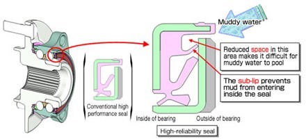 鑒于這些實際情況,NSK開發(fā)了一種具有高可靠性密封的輪轂軸承單元,該軸承在最具挑戰(zhàn)性的環(huán)境下抑制摩擦,提高耐泥水性,使用與其傳統(tǒng)產(chǎn)品相同尺寸的密封,實現(xiàn)了卓越的可靠性。