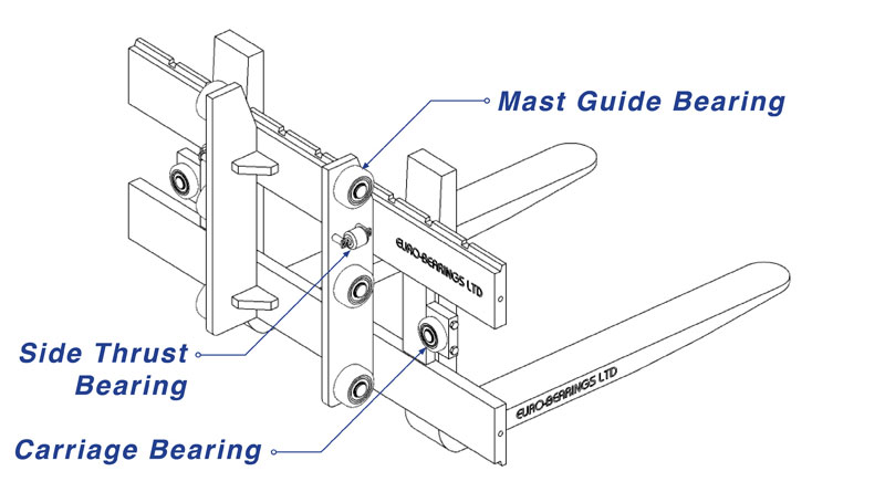 叉車上使用的桅桿軸承有四種類型,一是桅桿導(dǎo)向軸承,當(dāng)貨叉升起超過第一級(jí)時(shí),這些軸承將桅桿級(jí)向上導(dǎo)向,同時(shí)還將貨叉架連接到桅桿導(dǎo)軌上。二是托架軸承,當(dāng)貨叉托架沿桅桿上行時(shí),這些軸承為貨叉托架提供橫向?qū)?。三是?cè)推力滾子軸承,這些軸承將橫向(側(cè)向)載荷傳遞到桅桿上,有助于防止扭曲。四是鏈條滾子軸承,這些軸承用于引導(dǎo)升降桅桿的葉鏈,軸承通常像皮帶輪一樣用法蘭連接,以確保鏈條被鎖住。