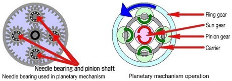 NSK公司開發(fā)了一種用于汽車自動變速器(AT)和混合動力電動汽車(HEV)行星機構(gòu)(一種用于自動變速器的減速機構(gòu),通過利用多個齒輪的旋轉(zhuǎn)和回轉(zhuǎn)運動的組合來調(diào)節(jié)輸出速度和扭矩)的超高速滾針軸承,該軸承專為小齒輪的高速旋轉(zhuǎn)而設(shè)計,有助于提高汽車的燃油效率。
